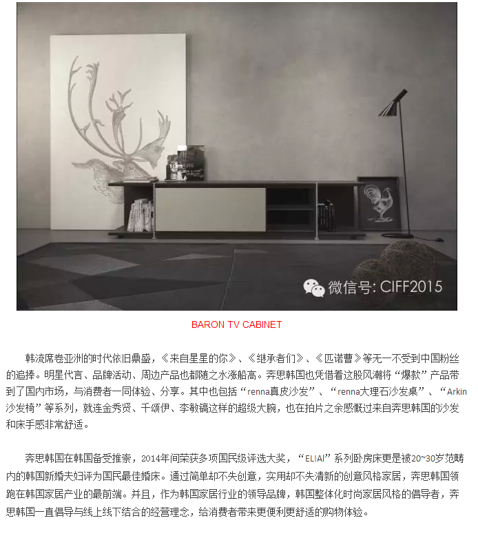 第36屆上海虹橋家具展:讓浪漫韓劇進入你的生活!來自星星的奔思韓國