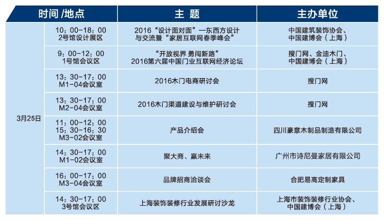 2016中國建博會(上海)3月25日展會活動預告