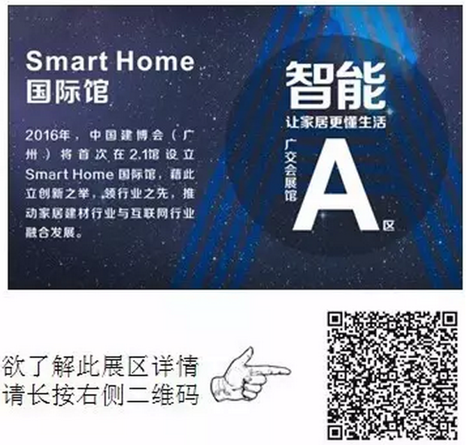 素有“亞洲建材第一展”之名的中國(guó)建博會(huì)(廣州)將于7月8-11日在廣交會(huì)展館和保利世貿(mào)博覽館隆重舉行,本屆展覽會(huì)總體規(guī)模達(dá)38萬平米,到會(huì)觀眾人數(shù)預(yù)計(jì)超過14萬人,是目前家居建材行業(yè)內(nèi)影響力最大的展會(huì)之一。而在本屆展會(huì)上,大會(huì)將首次設(shè)立Smart Home 國(guó)際館,該館聚焦于當(dāng)下火熱的“智能家居”概念,是繼“集成家居館”之后主辦方的又一傾力之作。